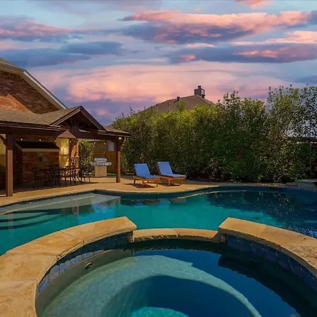 **Luxury Mansion Paradise - Cinema Room Heated Pool** offers an exquisite retreat where elegance meets entertainment in the heart of Rowlett. Nestled just 35 kilometers from Dallas Love Field, this stunning property provides easy access to the vibrant culture and attractions of Dallas, while offering a sanctuary of tranquility.